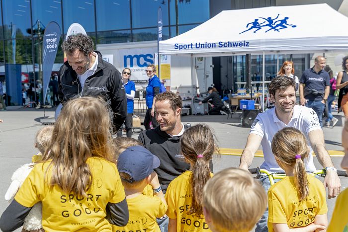 Gestern feierten die Laureus Stiftung Schweiz und die Sport Union Schweiz an der LUGA in Luzern gemeinsam mit den MiTu-Familien, Politikern und Messebesuchern den erfolgreichen Neustart des Integrationsprojekts MiTu (= Miteinander Turnen) zur Bewegungsförderung von Kindern aus sozial und kulturell benachteiligten Verhältnissen. Für besonderen Spass sorgten der Mini Veloparcour und das Showrennen von Fabian Cancellara, Mario Gyr, Marcel Hug und Carlos Lima.